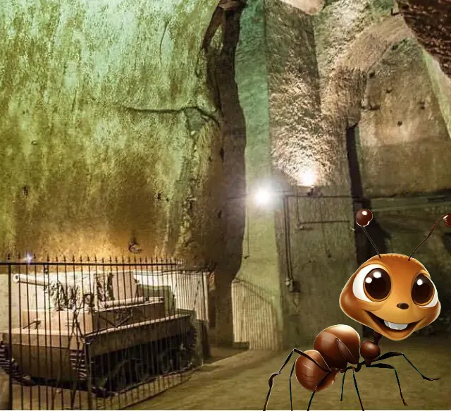 “Ehi ragazzi, siamo qui! Siamo le Formiche Amiche e questa è Diana Partigiana, la farfalla, giornalista. Siamo giunti alla quinta cisterna. Ora guardatevi intorno. Questo luogo prima veniva usato per il tufo, poi divenne un acquedotto, per molti anni fu abbandonato perché l'acqua non era tanto pulita e le persone, bevendola, si ammalavano. Quando scoppiò la seconda guerra mondiale, si trasformò in un rifugio, dove la gente correva ogni volta che la sirena annunciava un nuovo bombardamento. A volte si trascorrevano giorni e notti qui sotto, si mangiava quel poco che si riusciva a trovare, i bambini giocavano a nascondino tra le cisterne e i miei bis bis bis bisnonni si divertivano ad ascoltare le loro voci e a proteggere i loro sogni. Invece, noi formiche amiche eravamo sempre pronte a raccogliere le poche briciole e a dare agli uomini il nostro esempio di resistenza.